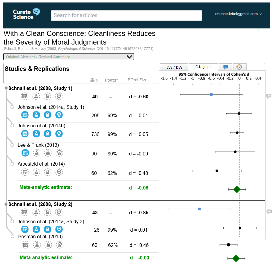 [1] In the future, users will also be able to create their own meta-analyses in the cloud for generalizability studies (a.k.a “conceptual replications”), which other users will easily be able to add to/update via crowd-sourcing.